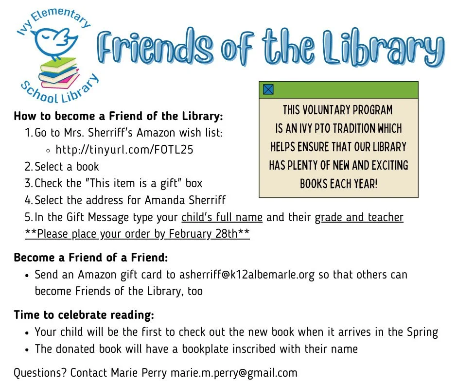 Welcome to the Ivy Elementary PTO website! Here you can learn more about who we are, how to stay informed of all the latest PTO news, events we sponsor, opportunities to get involved, our fundraising efforts, and services we support. And check out the calendar for upcoming events!