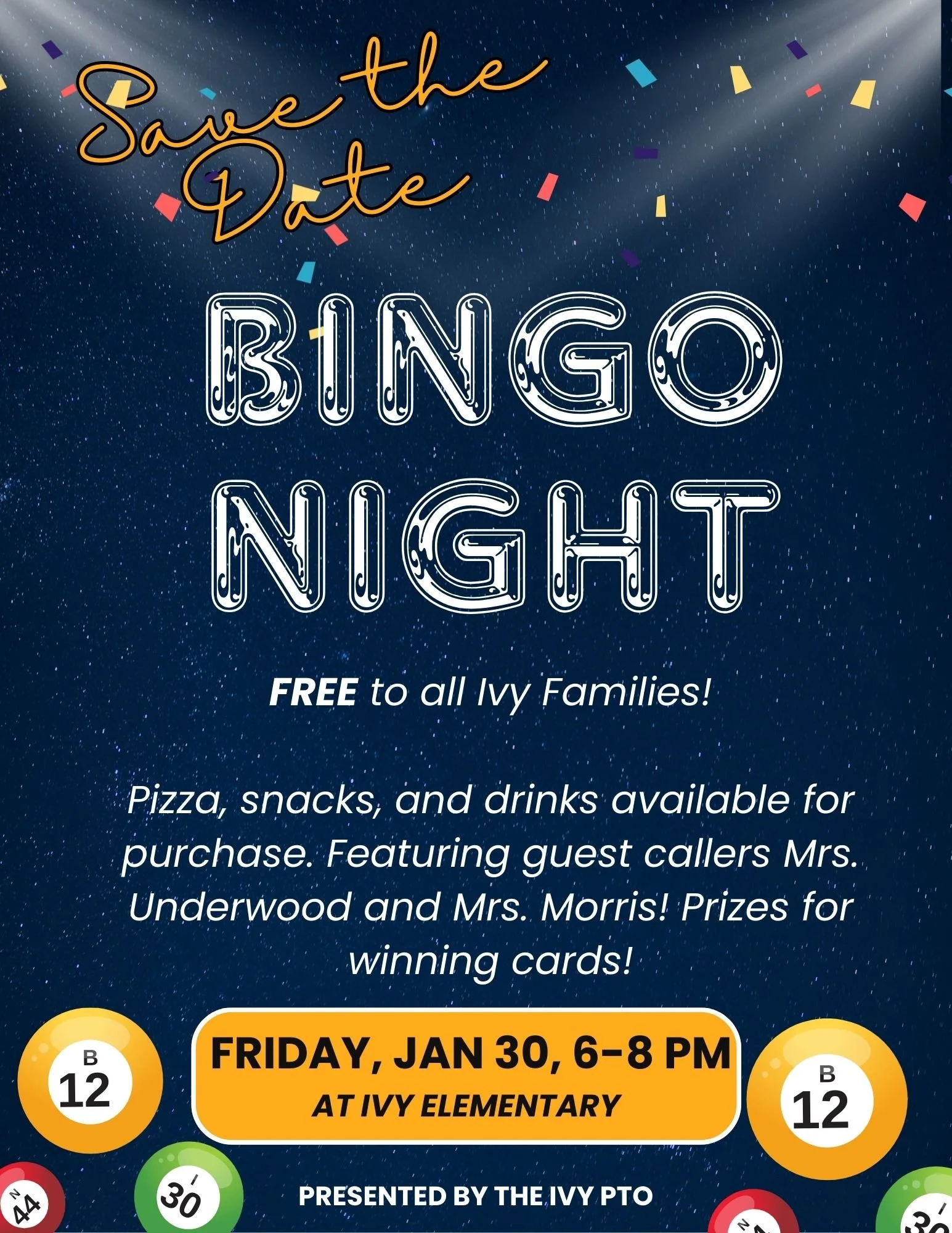 Bingo Night • 6-8p Friday, Jan 30 • School gym